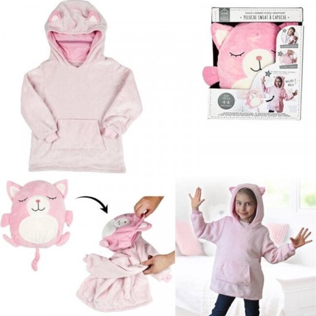 Geniet van het comfort en de zachtheid van deze kinder hoodie! Deze gevoerde kinder hoodie is roze van kleur en op de capuchon is voorzien van katten oortjes. Afmeting is ongeveer 66x53 cm. Geschikt voor de kinderen ongeveer tussen de 4 en 6 jaar. Lees meer.