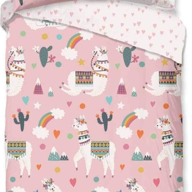Geef de slaapkamer van je kind een vrolijke, speelse uitstraling met het Alpaca dekbedovertrek! Dit schattige dekbedovertrek heeft een sprankelende roze achtergrond vol kleurrijke alpaca’s, regenbogen en levendige patronen, perfect voor kleine dromers die van dieren en fantasierijke prints houden. De achterkant is voorzien van een lieflijk patroon met roze hartjes op een witte ondergrond, zodat je het dekbedovertrek gemakkelijk kunt omdraaien voor een frisse nieuwe look.