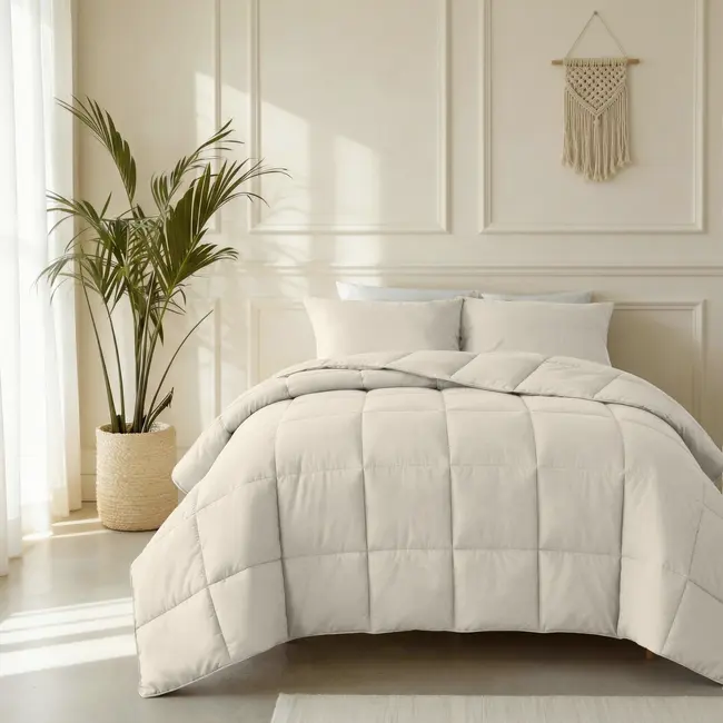 Met zijn neutrale beige tint brengt dit dekbed een rustige sfeer in de slaapkamer. Het ontwerp is eenvoudig en stijlvol, waardoor het goed te combineren is met uiteenlopende woonstijlen. Of je nu kiest voor modern, landelijk of minimalistisch, dit dekbed sluit daar naadloos op aan. Je bed oogt altijd netjes zonder dat je extra tijd kwijt bent aan opmaken. Dat maakt het niet alleen praktisch, maar ook een fijne basis voor een verzorgd interieur. Ideaal voor wie houdt van overzicht en eenvoud.