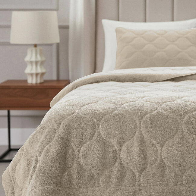 Dankzij de beige kleur en de zachte teddy structuur past dit dekbed moeiteloos in verschillende interieurstijlen. In een moderne slaapkamer brengt het warmte en zachtheid, terwijl het in een meer klassieke inrichting zorgt voor extra sfeer. De subtiele uitstraling maakt het eenvoudig te combineren met andere kleuren en materialen. Hierdoor creëer je een harmonieuze en rustige omgeving. Het dekbed geeft het bed een verzorgde en uitnodigende look, zonder dat je extra accessoires nodig hebt.