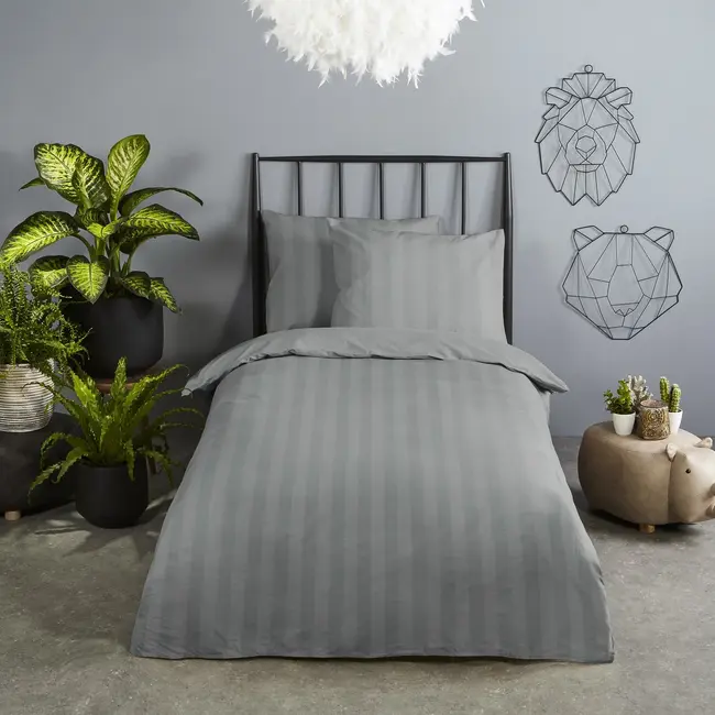 Ledikant dekbedovertrek streep - grijs - katoensatijn