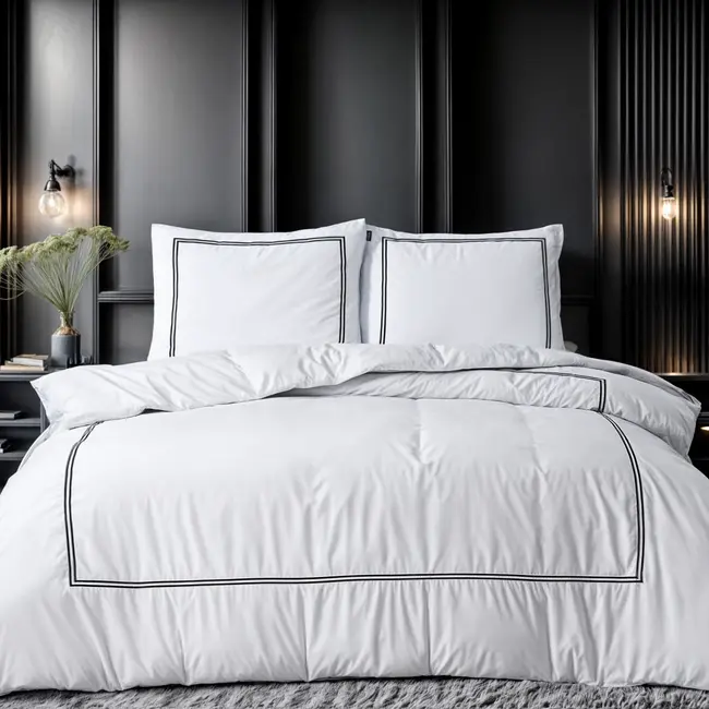Breng stijl en verfijning in je slaapkamer met dit elegante dekbedovertrek. Het helderwitte ontwerp is voorzien van dubbele zwarte lijnen, wat zorgt voor een moderne en tijdloze uitstraling. De subtiele omlijsting op zowel het overtrek als de kussenslopen ademt rust en luxe. Ideaal voor liefhebbers van minimalistische elegantie met een chique accent. Geniet van een serene slaapomgeving waar comfort en design perfect samenkomen.