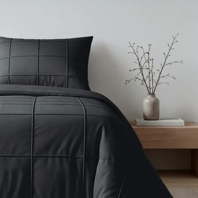 De zwarte kleur in combinatie met het pintuck patroon geeft dit dekbedovertrek een tijdloze en eigentijdse uitstraling. Het ontwerp past goed binnen moderne, minimalistische en industriële slaapkamers. Door de rustige basis kun je eenvoudig variëren met andere kleuren en accessoires. Of je nu kiest voor lichte tinten of juist een donker geheel, dit dekbedovertrek vormt een mooie basis. Het subtiele reliëf zorgt voor extra diepte zonder druk te ogen. Zo creëer je eenvoudig een harmonieuze en sfeervolle slaapkamer.