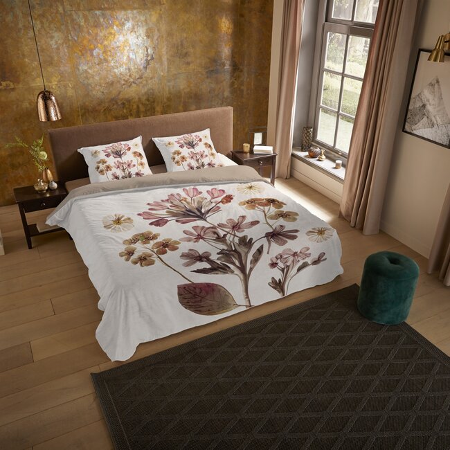 Geef je slaapkamer een rustige en elegante uitstraling met dit stijlvolle dekbedovertrek met gedroogde bloemenprint. De zachte aardetinten en het subtiele design brengen een natuurlijke, serene sfeer. Het overtrek is gemaakt van ademend en comfortabel katoen, wat bijdraagt aan een goede nachtrust. Geschikt voor een eenpersoonsbed en inclusief bijpassende kussensloop. Ideaal voor liefhebbers van een tijdloze, botanische stijl in huis.