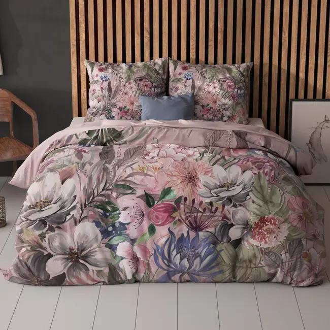 Het Microvezel Dekbedovertrek Tess heeft prachtige kleurige bloemen verspreid over het hele oppervlak in diverse roze en paarse tinten. Deze speelse elementen brengen een frisse, zomerse sfeer naar je slaapkamer. Dankzij de digitale print geniet je van haarscherpe details en levendige kleuren die lang mooi blijven. En wil je even een ander beeld in je slaapkamer, dan draai je het dekbed gewoon even om voor een rustige roze effen oppervlak.