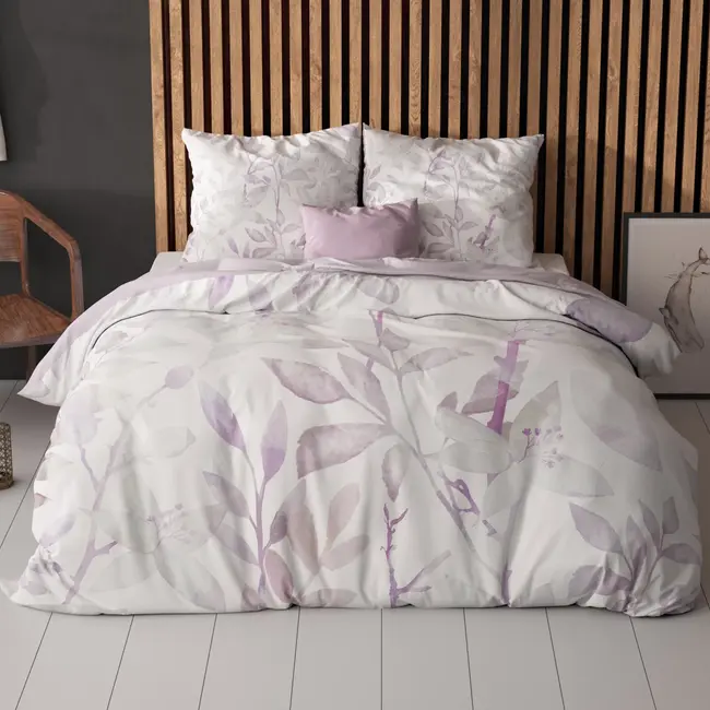 Het Microvezel Dekbedovertrek Water Leaves heeft prachtige pastel roze gekleurde bladeren verspreid over het witte oppervlak en brengt de rustgevende natuur in de slaapkamer. En wil je even iets anders, dan draai je het dekbed gewoon om voor een effen roze oppervlak. Dankzij de digitale print geniet je van haarscherpe details en levendige kleuren die lang mooi blijven.