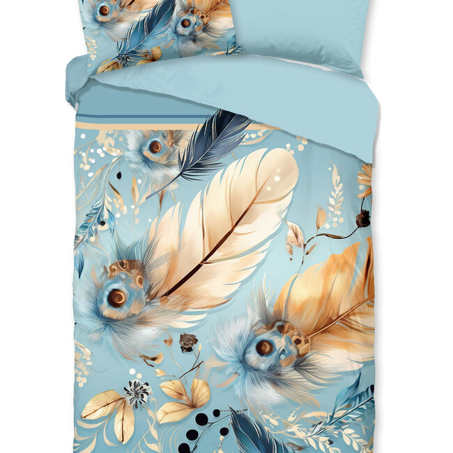 Breng rust en elegantie in je slaapkamer met het Microvezel Dekbedovertrek Wizz in een prachtige blauwe tint. Dit stijlvolle dekbedovertrek is versierd met een verfijnde print van sierlijke veren, wat zorgt voor een kalme en dromerige uitstraling. Het zachte kleurverloop en de subtiele details maken het perfect voor een moderne of bohemian slaapkamer.