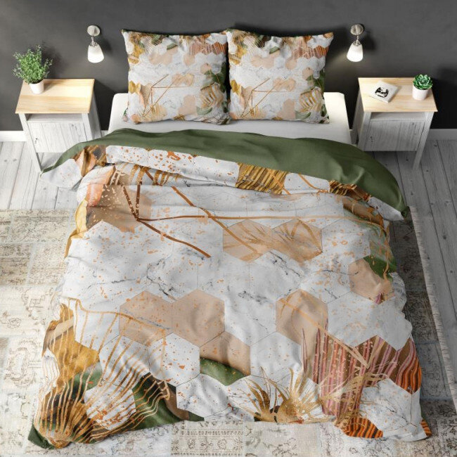 Het Microvezel Dekbedovertrek Zaza heeft botanische accenten zoals fragmenten van bladeren en bruinig riet. Deze rustieke elementen brengen een kalmerende sfeer naar je slaapkamer, perfect voor een rustgevende uitstraling. Dankzij de digitale print geniet je van haarscherpe details en levendige kleuren die lang mooi blijven. En wil je even wat anders, dan draai je eenvoudigweg het dekbed om voor een mooie diepgroene effen zijde.