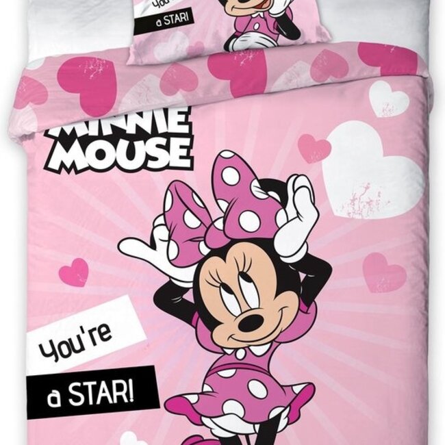 Disney Minnie Mouse Dekbedovertrek, Star. Vrolijk eenpersoons polyester dekbedovertrek van Minnie Mouse. Minnie is omgeven door sterren in verschillende afmetingen op een roze achtergrond. Lees meer.