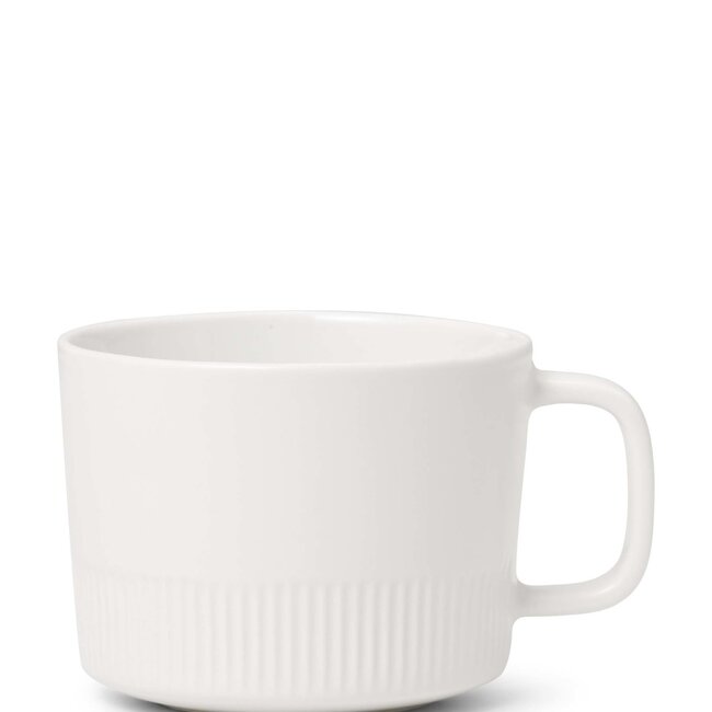De mok wordt geleverd in de kleur chalk white. Het materiaal is gemaakt van hoge kwaliteit porselein en is met de hand gemaakt. Het heeft een unieke form en een glanzende uitstraling. De binnenkant is geglazuurd.