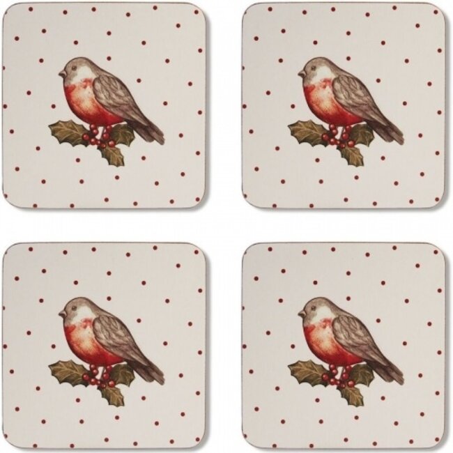 Deze onderzetters zijn onderdeel van de Cooksmart Red Robin keukengerei collectie. De onderzetters zijn gemaakt van kurk en hebben hebben een kunststof toplaag. De afmeting van de onderzetter is 10x10 cm en worden per 4 stuks geleverd.