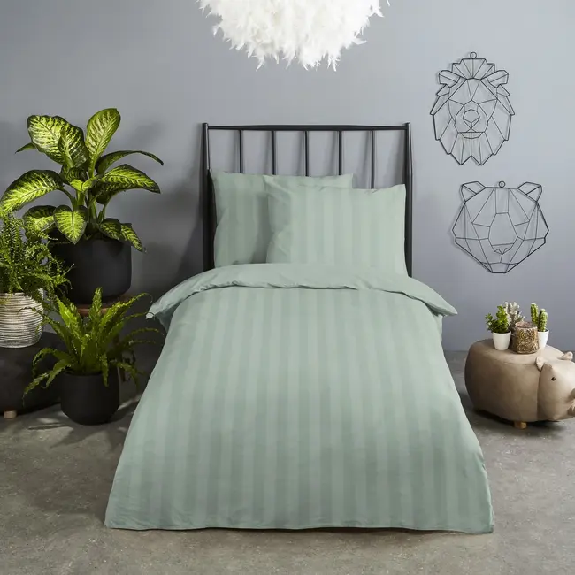 Peuterbed dekbedovertrek streep - zachtgroen - katoesatijn - 120x150 x 60x70 cm