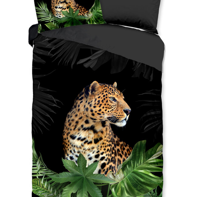 Pure dekbedovertrek Luipaard is een zwart dekbedovertrek met een prachtige Luipaard tussen de groene bladeren.