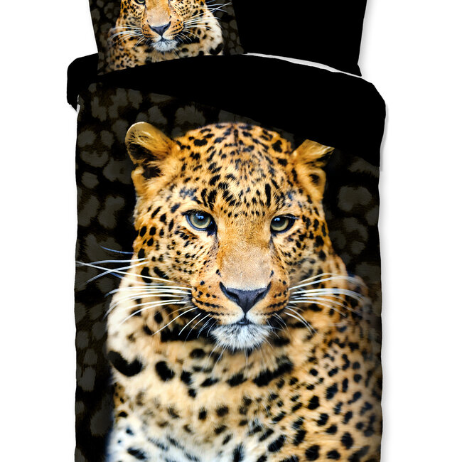 Het Pure Rayan dekbedovertrek is een opvallende en stoere keuze voor de slaapkamer, dankzij de indrukwekkende fotoprint van een luipaard die een krachtige jungle-look toevoegt. De scherpe, realistische print maakt het overtrek bijzonder en bijna levensecht, perfect voor een jongenskamer of voor wie graag een vleugje natuur in het interieur wil brengen. De overwegend zwarte kleur, inclusief de effen zwarte achterzijde, zorgt voor een robuuste en stijlvolle uitstraling.