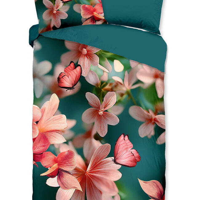 Pure dekbedovertrek Yeya is een dekbedhoes met prachtige magnolia bloemen en vlinders.