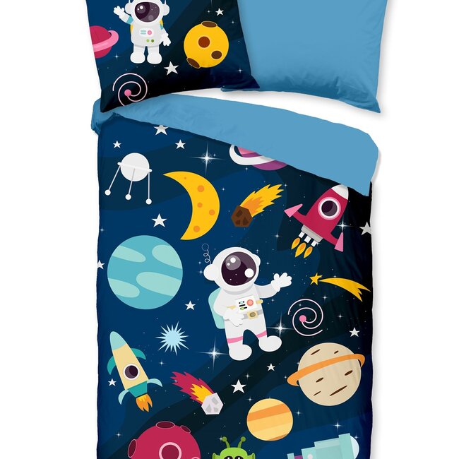 Mooi kids dekbedovertrek van microvezel met planeten en astronauten. Dit dekbedovertrek is dubbelzijdig te gebruiken en heeft een dubbel doorlopende instoptstrook. Lees meer.