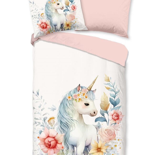 Pure kinderdekbedovertrek Unicorn is een off white dekbedovertrek met afbeeldingen van bloemen en een unicorn. Het beddengoed is gemaakt van 100% microvezel. Lees meer.