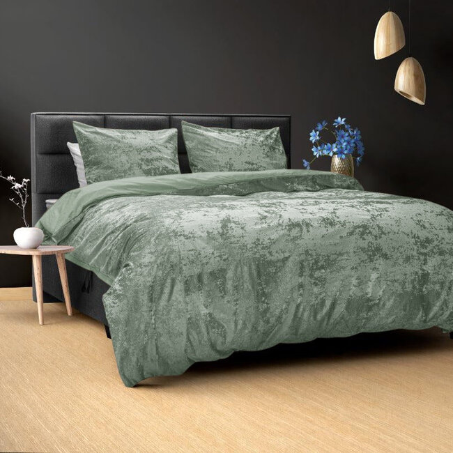 Houd er rekening mee dat de daadwerkelijke productkleur van het groene dekbedovertrek kan afwijken, vanwege de gevoeligheid van fluweel voor lichtinval.