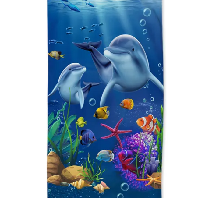Good Morning strandlaken met print van twee dolfijnen in de zee. De handdoek is gemaakt van 100% polyvelours. Lees meer.