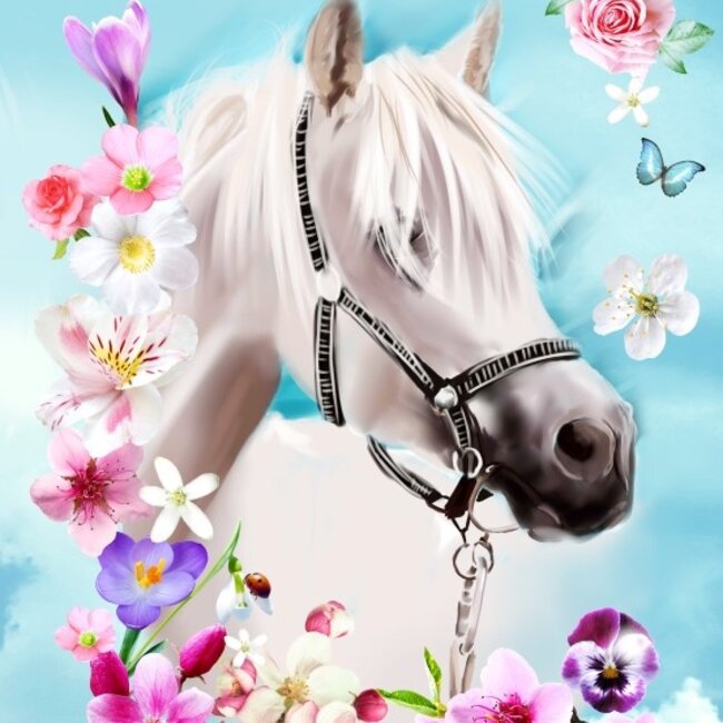 Leuk strandlaken met print van een witte pony. gemaakt van 100% polyvelours 300 grams.