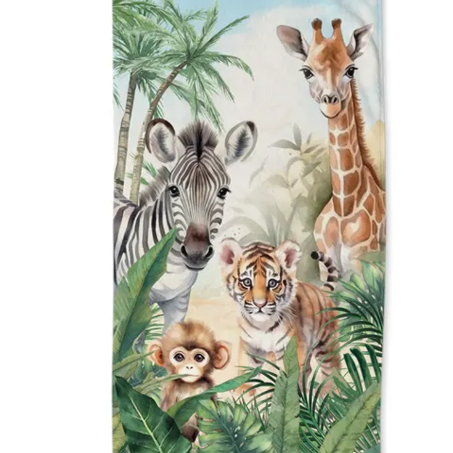 Good Morning strandlaken met print van wilde dieren in de jungle. De handdoek is gemaakt van 100% polyvelours. Lees meer.