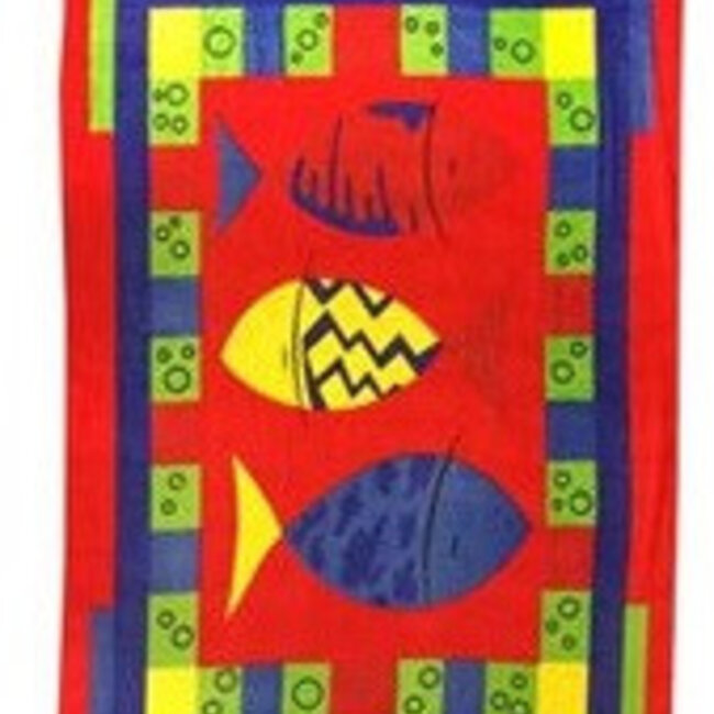 Strandlaken Zeedieren is een strandlaken met een afbeeldingen van vissen en schelpen