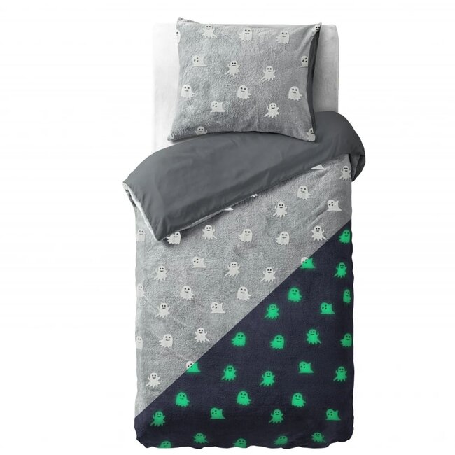 Laat je betoveren door de warme omhelzing van de Sleeptime Glow in the Dark Spooky dekbedovertrek. Super zachte fleece dekbedovertrek Spooky is een grijs dekbed overtrek met verschillende spookjes. Heerlijk warm in de winter. Wat dit kinderdekbedovertrek echt bijzonder maakt, is het glow-in-the-dark effect dat in de stof is geweven. Laad het op met licht gedurende de dag en geniet 's nachts van een mysterieuze gloed. Superleuk dus om de kinderkamer helemaal af te maken!